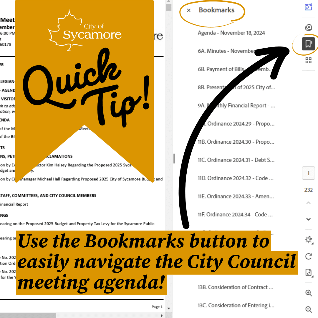 Want to learn about specific topics on the City Council agenda without having to sift through 200+ pages? Each agenda item is bookmarked within the PDF to make navigation easier. Here’s how to get there: